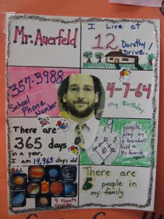 This is a great project for the beginning of the school year.  Your friends create a poster that shows all the numbers that are important in their lives.  Shows how math is all around us, and it could be a great get-to-know-you activity.  I'm thinking if you wanted to do this later in the year, you could require your friends to use other number names that the class would have to figure out.  For example, instead of saying I was born on May 8th, they might say they were born on four squared divided by two.  The would write the equation of course, I just couldn't figure out how to type in an exponent!